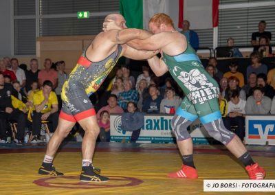 130kg (gr.-röm.): Im Schwergewicht traf Gabriel Fix auf seinen alten Widersacher, Oliver Hassler. Beide Athleten kennen sich quasi inn- und auswendig. Dementsprechend ausgeglichen war der Kampf bei dem der Unparteiische den Wiesentäler als den aktiveren sah. Er belegte Fix mit zwei Verwarnungen die kampfentscheidend waren. Mit 4:3 nach Punkten verließ Hassler als „glücklicher“ Sieger die Matte. (1:4)