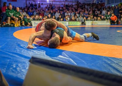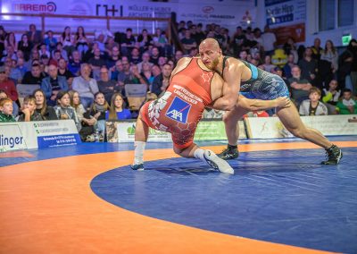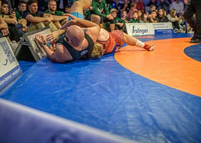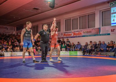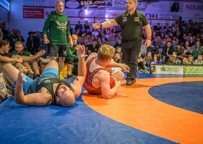 Einen typischen Schwergewichtskampf bekamen die Fans in der Gewichtsklasse bis 130 kg geboten. Immer im Angriffsmodus versuchte Mindaugas Venckaitis von den Hornets seinen Gegner Simeon Stankovick in Bedrängnis zu bringen. Dieser nutzte seinen Gewichtsvorteil von knapp 20 kg geschickt, um die Angriffe des Urloffeners zu blockieren. Am Ende stand es 3:1 für Veckaitis. Urloffen konnte somit zum 1:1 ausgleichen.