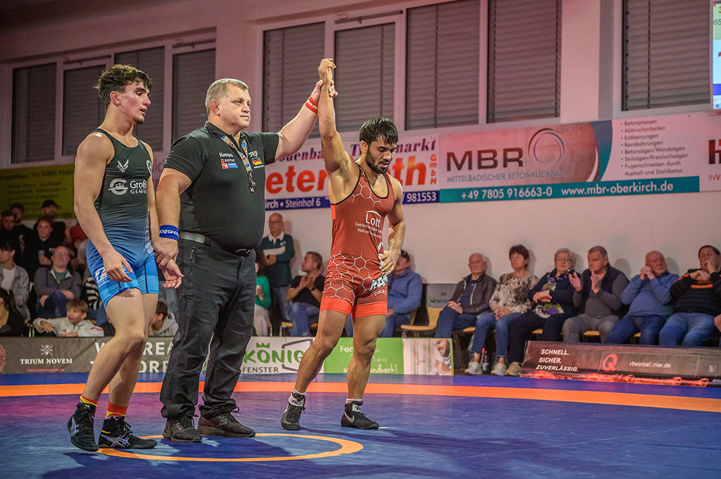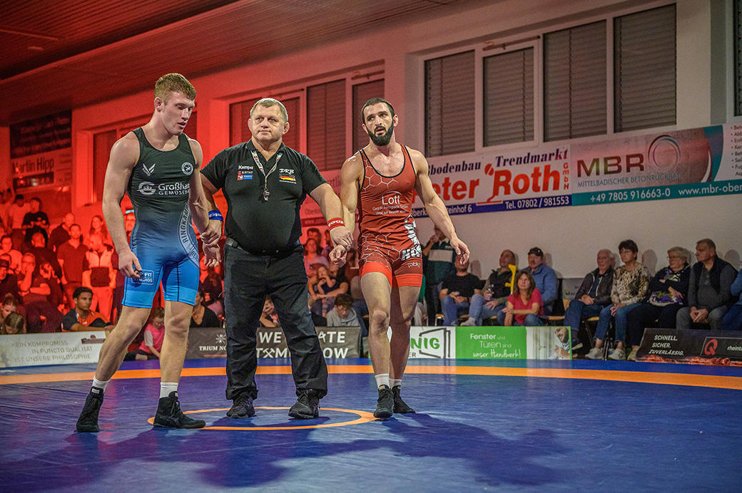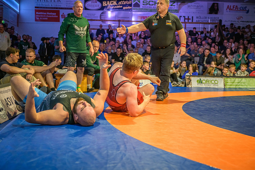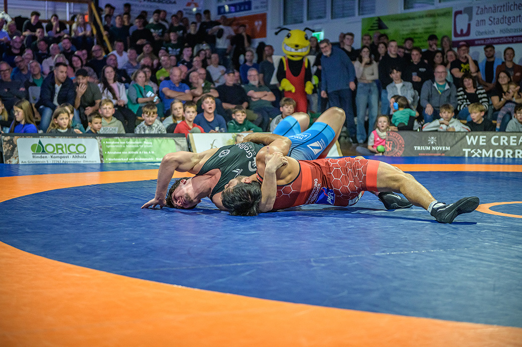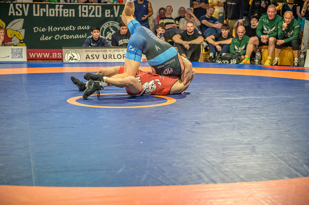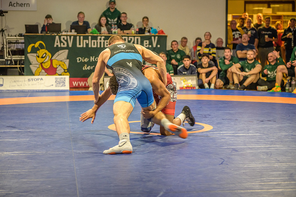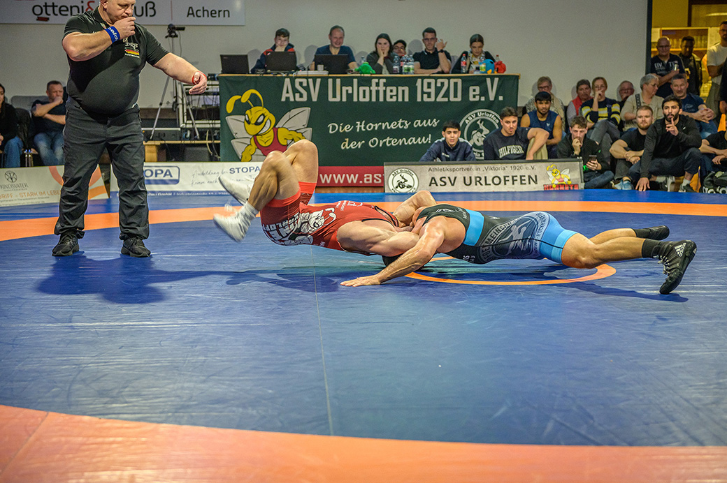 Mit Nika Korshia haben die Hornets einen verlässlichen Siegringer in ihren Reihen. Dies zeigte er auch gegen  den Reilinger Luis Greif. Nach sechs Minuten stand es 6:0 für den Hornet. Wieder einmal wechselte die Mannschaftsführung, dieses Mal zu Gunsten des ASV Urloffen. Es stand 7:6