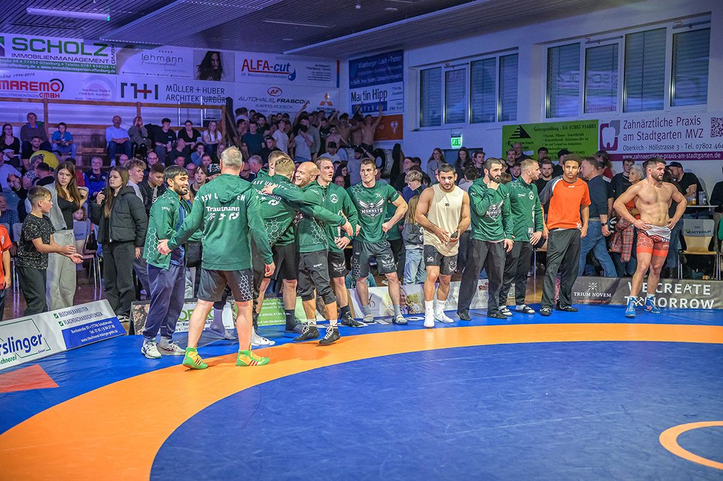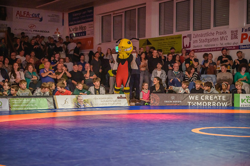 Urloffen (rs)…Mit einem dynamischen und temperamentvollen Tanz eröffnete die Merowinger Garde aus Urloffen den Kampfabend. In der voll besetzten ASV-Halle in Urloffen. Danach erlebten die Fans einen wahren Ringerkrimi der Hornets gegen die RKG Reilingen/Hockenheim aus Nordbaden Erst nach dem letzten Kampf konnten die Hornets einen glücklichen 9:8 Sieg gegen die RKG Reilingen/Hockenheim bejubeln. Damit verteidigen die Meerretichdörfler auch nach dem fünften Kampf die Tabellenführung und sind weiterhin ungeschlagen.