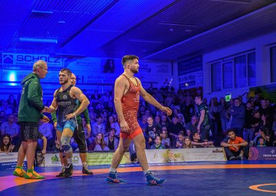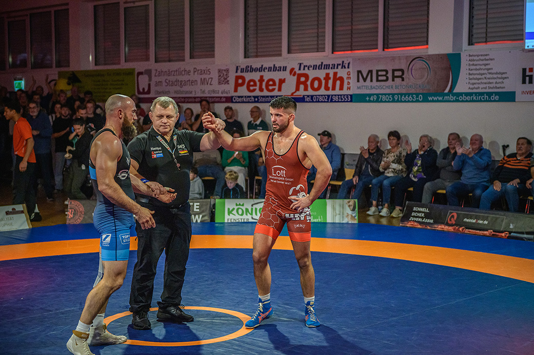 Sakit Guliyev bekam es mit dem agilen Vatslav Vashedskii zu tun. Der Georgier im Dress der Hornets bestimmte den Kampf. Punkt um Punkt wurden seinem Konto gutgeschrieben. Zum Unmut der Fans wurde die passive Ringweise des Reilingers allerdings nicht geahndet. Am Ende stand ein klarer 11:0 Sieg, und damit ein 3:0 Sieg, für den Urloffener auf der Anzeigetafel, Urloffen ging damit im Mannschaftskampf mit 4:1 in Führung.