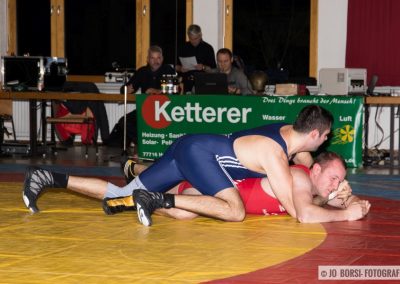 57kg (gr.-röm.): Einen harten Brocken hatte ASV Nachwuchstalent, Anton Schwarzkopf mit dem 11 Jahre ältere und körperlich kompakten Michael Dold vor der Brust. Anton war auf den Kinzigtäler sehr gut eingestellt, er rang ohne Respekt. Im Bodenkampf verstand es Dold seine Stärke auszuspielen und kam, nach hartem Kampf, zu einem 9:4 Punktesieg (2:0)