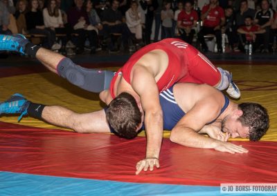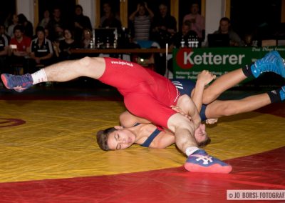66kg (gr-röm.): Jonas Schneider, der für den verhinderten Dimitrij Simagin einsprang, stand gegen Luca Lauble auf verlorenen Posten. Der KSV Athlet zeigte eindrücklich warum er zu den stärksten Athleten seiner Gewichtsklasse zählt. Nach kurzer Kampfzeit gewann er den Kampf per technischen Überlegenheit (13:4)