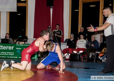 71kg (gr.-röm.): Joshua Knosp traf auf den nicht ungefährlichen Marius Allgeier. Knosp diktierte von Beginn an den Kampf. Er rang konzentriert und offensiv und punktete zum richtigen Zeitpunkt und verhinderte zeitgleich dass der unbequem ringende Allgeier  seine quallitäten ausspielen konnte. Nach starkem Kampf ging der Kampf beim Stand von 0:5 nach Punkten an das junge Talent aus Urloffen (17:6)