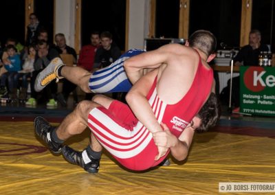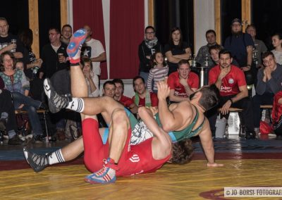 75kg (Freistil): Im letzten Kampf des Abends trafen Markus Neumaier und Kevin Gomer aufeinander. Zu Kampfbeginn überraschte der kinzigtäler Athlet und schulterte den überraschten Gomer mit einer Kopfbeinklammer (27:6)