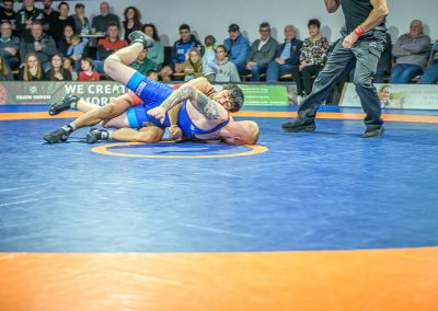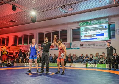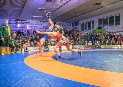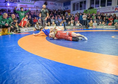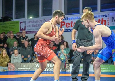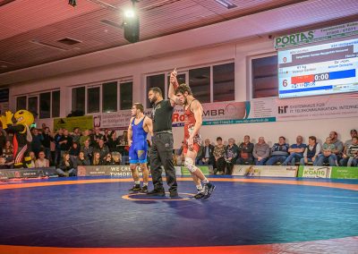 In der ersten Halbzeit dieses Freistilkampfes sah es nach einem Sieg für den Hornet Stefan Käppeler aus. Mit einer 2:0 Führung ging er in Kampfpause. Danach punktete allerdings nur noch der Rumäne im Trikot der Saarländer. Durch seinen Kampfeinsatz konnte Käppeler allerdings sicherstellen, dass Valentin Borzin im Trikot der Hüttigweiler nur zwei Mannschaftspunkte erkämpfen konnte. Zwischenstand: 5:12