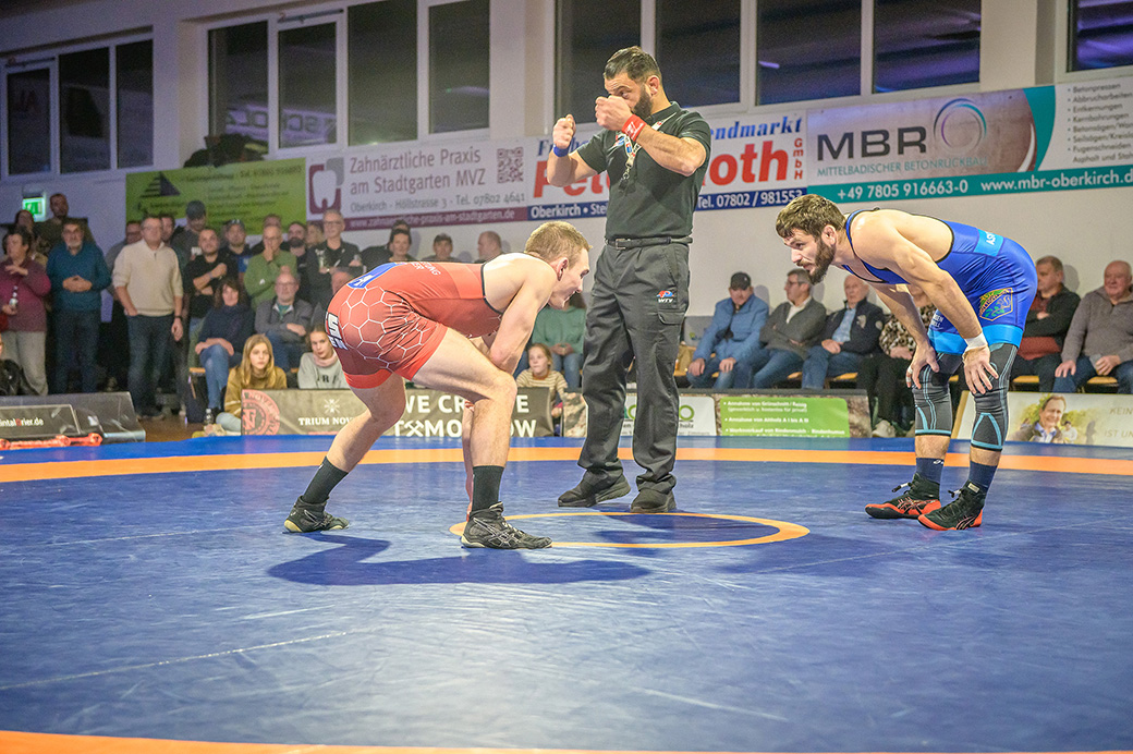Eine klare Sache war der Überlegenheitssieg des Vizeweltmeisters Eugenin Mihalcian (U23) gegen den Hornet Raphael Langenecker. Beim Stand von 16:1 für den Saarländer wurde das ungleiche Duell beendet. Hüttigweiler erhöhte auf 5:10.