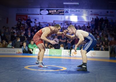130 kg (Gr.): Der Kampf zwischen Lucas Lazogianis und Maximilian Remensperger wurde im Vorfeld als einer der Schlüsselkämpfe auserkoren. Und der Schwabe im Dienste des ASV zeigte wohin die Reise gehen soll. Mit einer unglaublichen Physis demontierte er den Freiburger und konnte ihn mehrfach werfen und drehen, was ihm nach guten vier Minuten den vorzeitigen Sieg durch technische Überlegenheit einbrachte. Nun war das Publikum auf Betriebstemperatur und es war alles für den Auftritt des Weltmeister vorbereitet. (4:2)