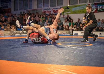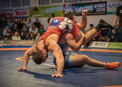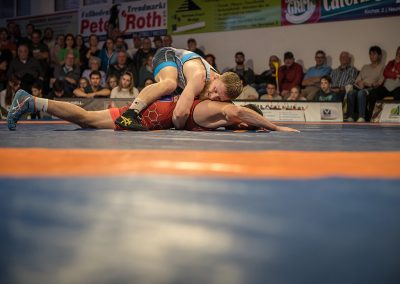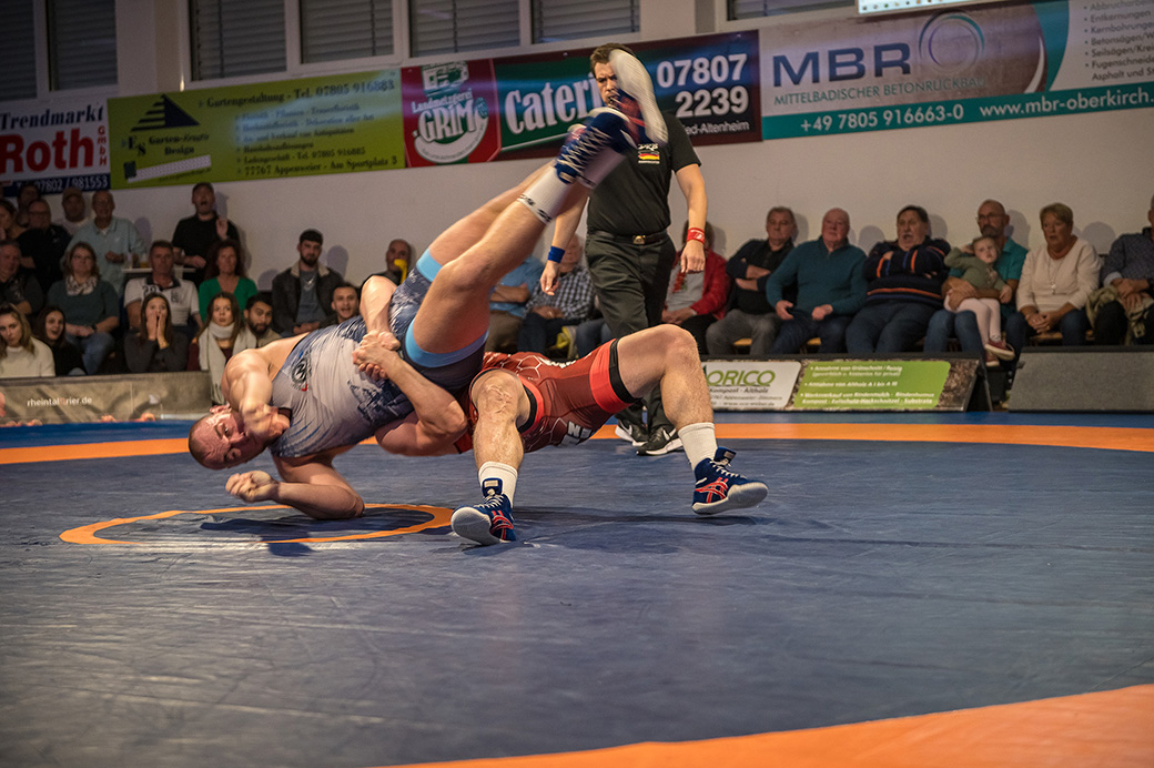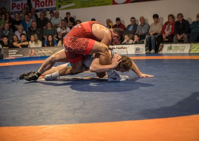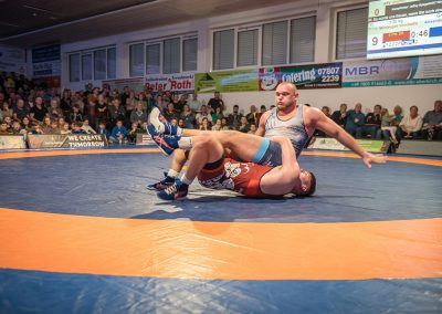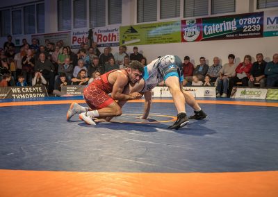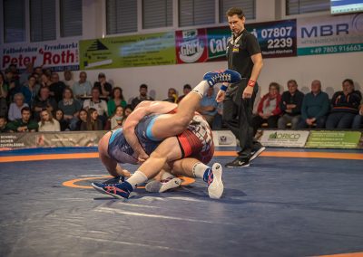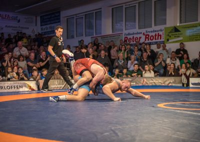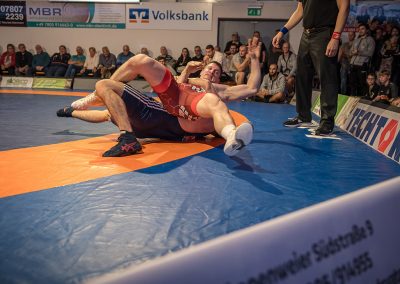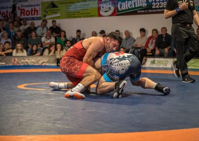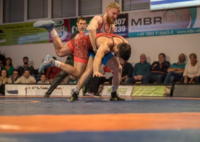 Andrej Schwarzkopf hatte mit Erik Thiele eines der Deutschen Aushängeschilder. Thiele konnte in diesem Jahr die Olympiaqualifikation sichern und stand mehrfach bei internationalen Turnieren auf dem Treppchen. Und Andrej Schwarzkopf machte einen herausragenden Kampf. Das Urloffener Eigengewächs verlor das Duell zwar mit 7:14, jedoch kann man dieses Ergebnis als großen Erfolg werten. Gegen Ende des Kampfes packte Schwarzkopf noch einen raus und holte sieben Punkte innerhalb 20 Sekunden. Der Gäste Ringer war dann froh, als der Kampf mit der letzten Zweierwertung des Urloffeners zu Ende war. (7:6)