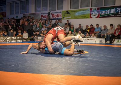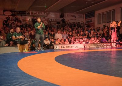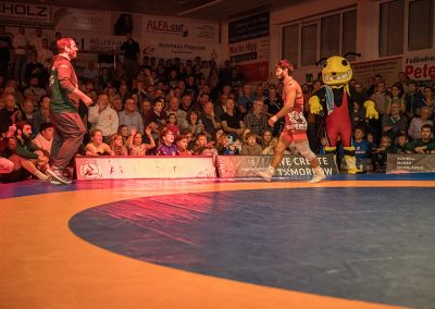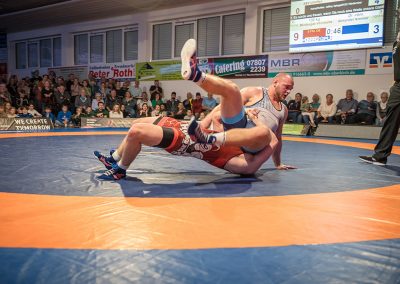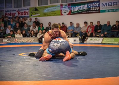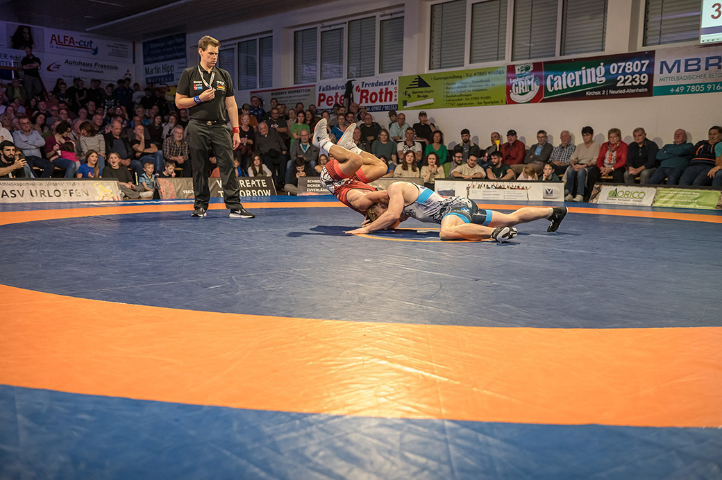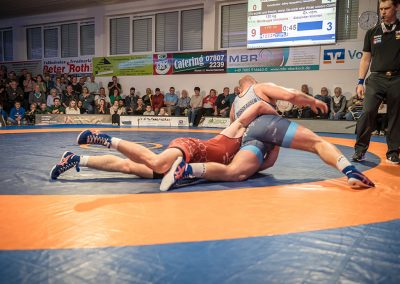 Mindaugas Venckaitis stand dem 24 kg schwereren Alexander Kreimer gegenüber. Der Litauer im Dienste der Urloffener zeigte wie immer einen enormen physischen Kampf und konnten den deutlich schwereren Kontrahenten mehrfach drehen. Am Ende gelang es ihm das Duell mit 11:3 zu gewinnen. Eine wahre Energieleistung die dem ASV Urloffen drei Mannschaftspunkte einbrachte. (3:4)