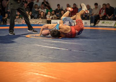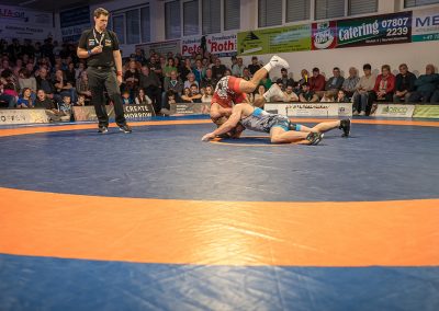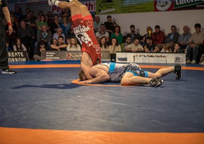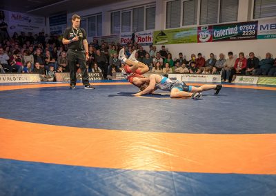 Joshua Knosp, einer der vier eigenen ASV Athleten, hatte es nicht leichter als seine Vorgänger. Der Albaner Chermen Valiev konnte in diesem Jahr die Bronzemedaille bei den Olympischen Spielen erringen. Knosp kämpfte mit viel Herz und machte dem Superstar das Leben schwer. Am Ende gewann der Albaner zwar mit 12:4, jedoch war es für Knosp ein Achtungserfolg. (7:14)