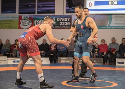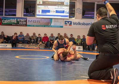 Nikolai Kiryakov traf ebenfalls mit Ashot Shahbazyan auf einen Athleten, der als Armenischer Auswanderer in der Jugend zu den Mainzer kam. Es war ein sehenswerter Kampf, bei dem der Urloffener meist die bessere Antwort hatte und am Ende verdient mit 14:7 gewann. (8:9)