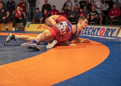 Mihai Petic, der sich bisher schwer tat, konnte auch gegen Burhan Akbudak wenig Akzente setzten. Er musste die Stärke des amtierenden Europameister anerkennen und verlor das Duell auf Schulter. (8:13)