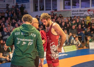 Stefan Käppeler konnte im letzten Kampf des Abends nur noch Ergebniskosmetik machen. Und dies tat er hervorragend. Mit einem vorzeitigen TÜPS gegen Anousch Jafari-Gorzini beendete er einen starken Kampfabend der Urloffener, der am Ende nicht belohnt wurde, aber Hoffnung auf die letzten beiden Kämpfe im Kampf um den Klassenerhalt macht. (12:17)
