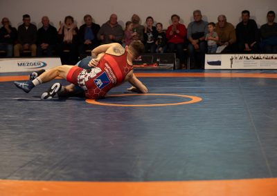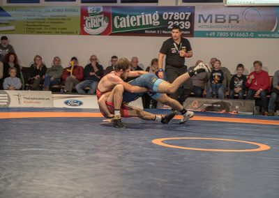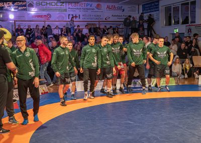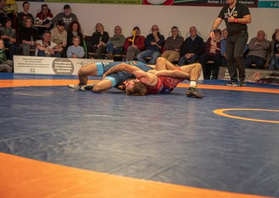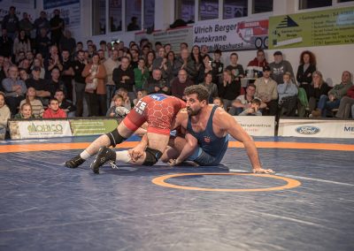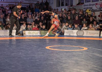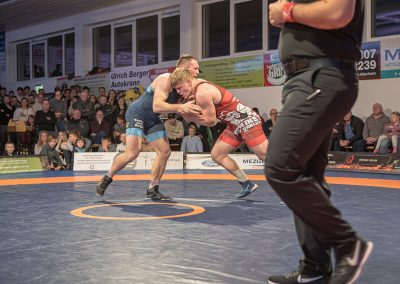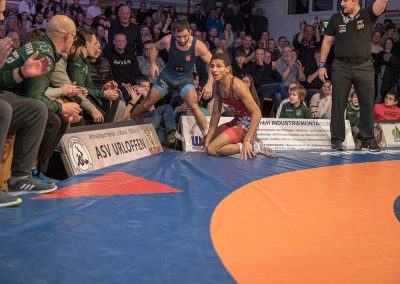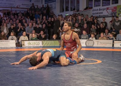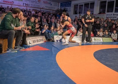 Sein Bundesligadebüt feierte Mohammad Umkhadjiev gegen Abdallh Karem. Umkhadjiev trainiert seit Jahren beim ASV Urloffen und ging den Weg durch die Jugendakademie der Hornets. Er hatte es mit dem über 20 kg schwereren Syrer Abdallah Karem zu tun. Er machte einen starken Kampf und war der aktivere Athlet. Die sehr gut gefüllte Athletenhalle feuerte den jungen Uroffener bedingungslos an und jubelten am Ende über einen 10:7 Sieg. (2:4)