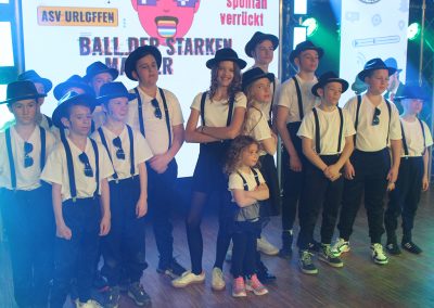 Für eine mitreißende Einstimmung sorgten die ASV Kinder und Teens mit ihrem kleinen Musical zu „Blues Brothers and Sisters“. Es folgte wie gewohnt der beeindruckende Tanz der Phoenix Garde des Narrenvereins Zimmeria-Hornussia Urloffen, die wie immer die Latte für die Hobbytänzer ein ganzes Stück nach oben verlegten. Eine besondere Überraschung folgte am Ende des ersten Programmblocks mit der österreichisch-bayerischen Co-Produktion „Nasenstupfertanz“ von Herbert Laug und Anette Ruhmann-Kiefer.