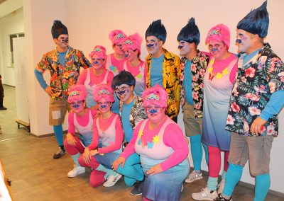 Nach dem großen Finale bedankten sich die Vorstände Tarec Knosp und Sven Kiefer bei allen, die tatkräftig am diesjährigen Programm mitgewirkt hatten. Ein besonderer Dank ging dabei an Melanie Kiefer, die nicht nur das gesamte Programm auf die Beine gestellt hatte, sondern auch tatkräftig choreographierte und einstudierte („Zwerge“). Unterstützt wurde sie dabei von den talentierten Kreativköpfen Steffi Sauer („Flashmob -Trolls“), Isabelle Garnier und Ramona Kutz („Blues Brothers and Sisters“). Ein besonderer Dank ging auch an die Helfer hinter der Bühne: Das Team von Annette Ruhmann-Kiefer, das wie jedes Jahr die Superstars des ASV schminkte, und die vielen Helferinnen und Helfer, die vor und hinter der Bühne für einen gelungenen Abend sorgten. Mit toller Tanzmusik von Chris und Daniel von Viervierteltakt und leckerem Essen klang der bunte Abend schließlich gemütlich aus.