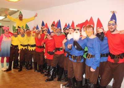 Im letzten Programmblock des Abends unterhielt die Merowinger Garde des Narrenvereins Zimmeria-Hornussia Urloffen gewohnt professionell und unterhaltsam. Mit einem Augenzwinkern beendeten die aktiven ASV-Ringer als „Zwerge“ schließlich auch den dritten Unterhaltungsblock.