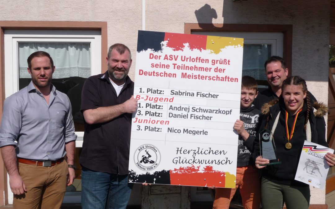 Urloffen/Bönen..(R.S.)..  Am vergangenen Wochenende 24.03.2017-25.03.2017 fand die Deutsche Meisterschaft der weiblichen Jugend im Nordrhein-Westfälischen Bönen statt. Mit am Start war Sabrina Fischer aus der Taltentschmiede des ASV Urloffen die in der Klasse bis 70 kg startete.  Sabrina Fischer zählte wohl zum engeren Favoritenkreis, aber mit solch einem Erfolg und mit der Dominanz die Sabrina Fischer zeigte hatte sicherlich niemand gerechnet.