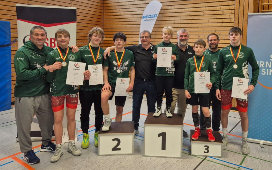 Urloffen…(rs)… Mit beeindruckenden Ergebnissen präsentierten sich die Hornets aus dem Meerrettichdorf beim zweiten Teil der südbadischen Meisterschaften in Singen. Hatten Sie bereits in einer Woche zuvor mit Florian Ludwig einen südbadischen Meister bei den Männern gestellt, konnte dieser Erfolg am Samstag bei den Greco-Meisterschaften durch Jan Hiebsch wiederholt werden. Eindrucksvoll dominierte das Nachwuchstalent des ASV Urloffen seine Gewichtsklasse. Dies musste sowohl Kniaz Kaloiev vom Regionalligisten ASV 1885 Freiburg als auch Mathis Stefaniek von der RG Eiche Allensbach anerkennen.