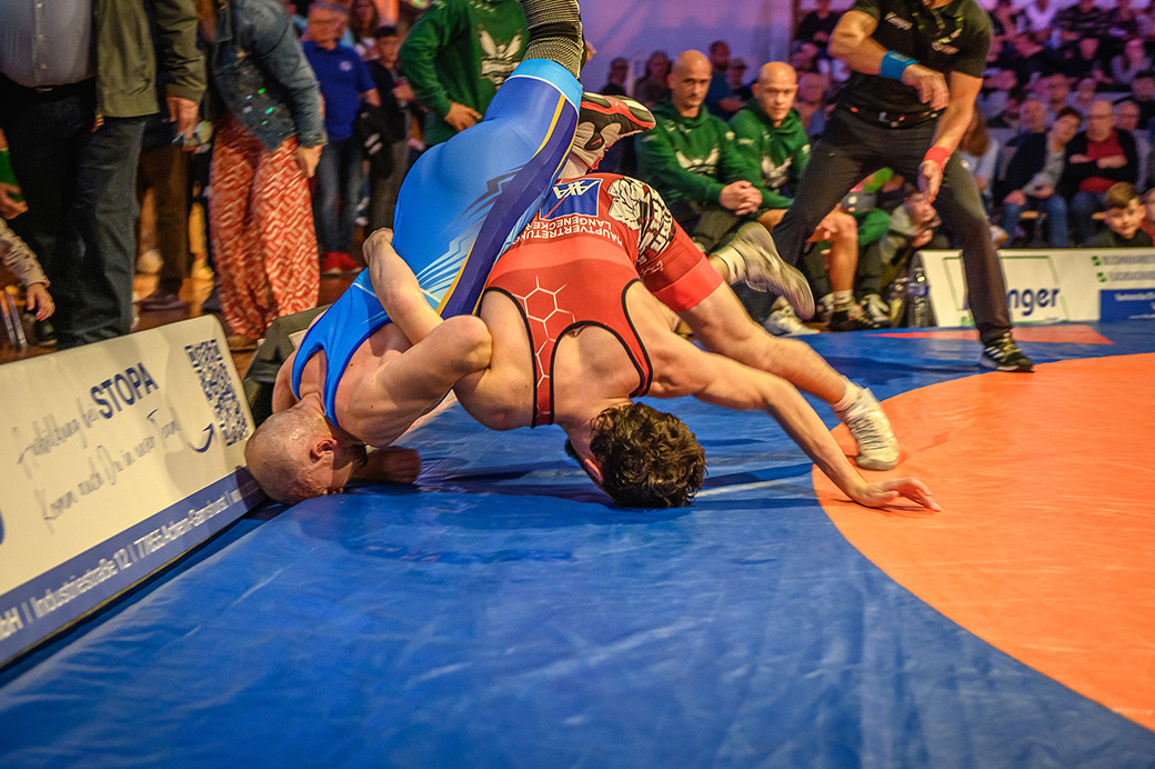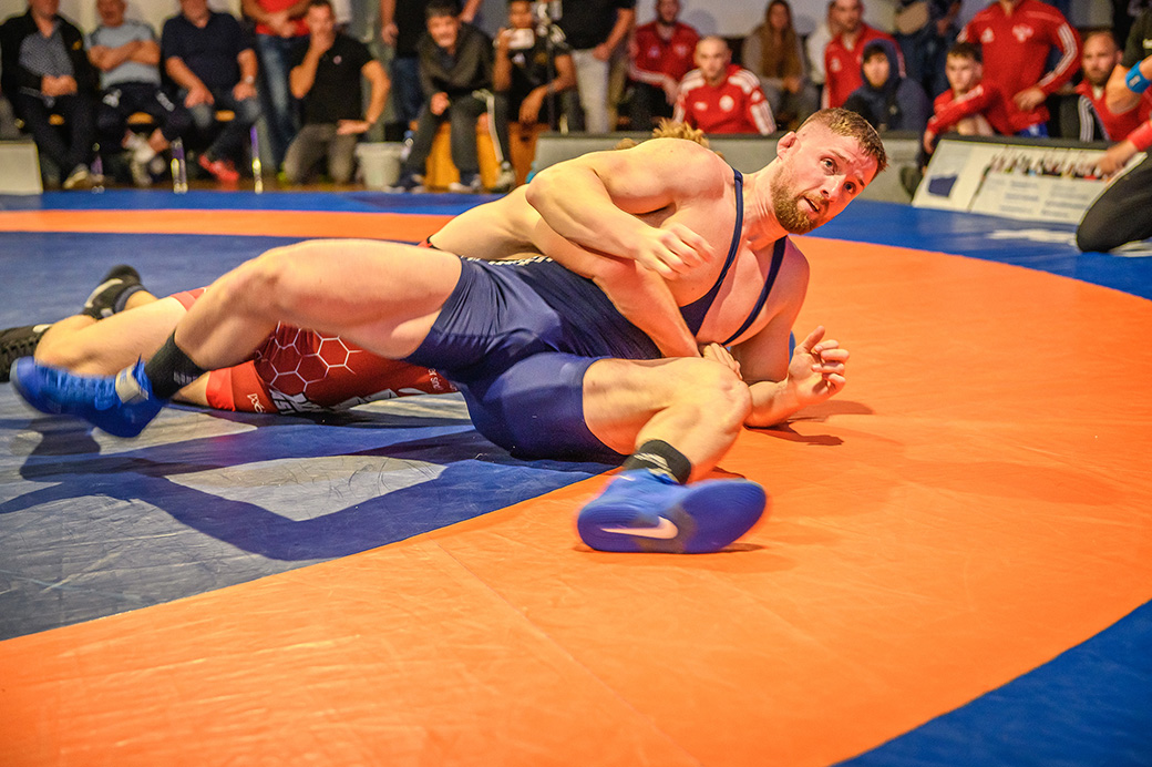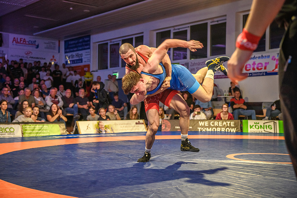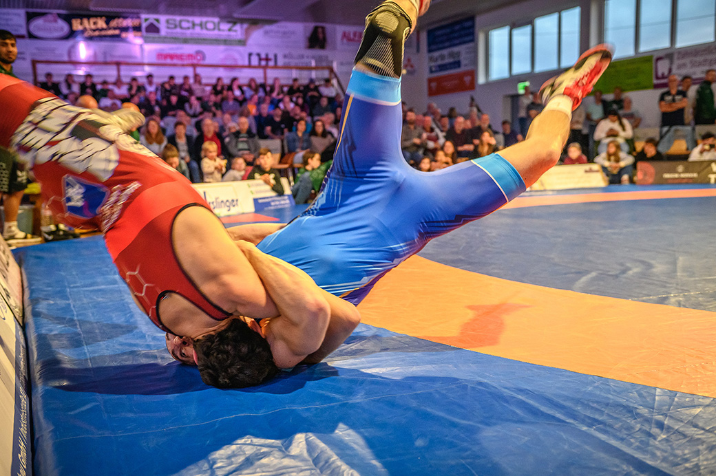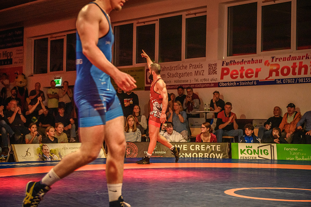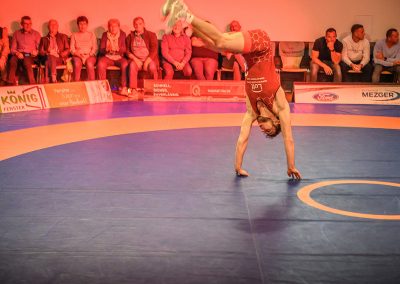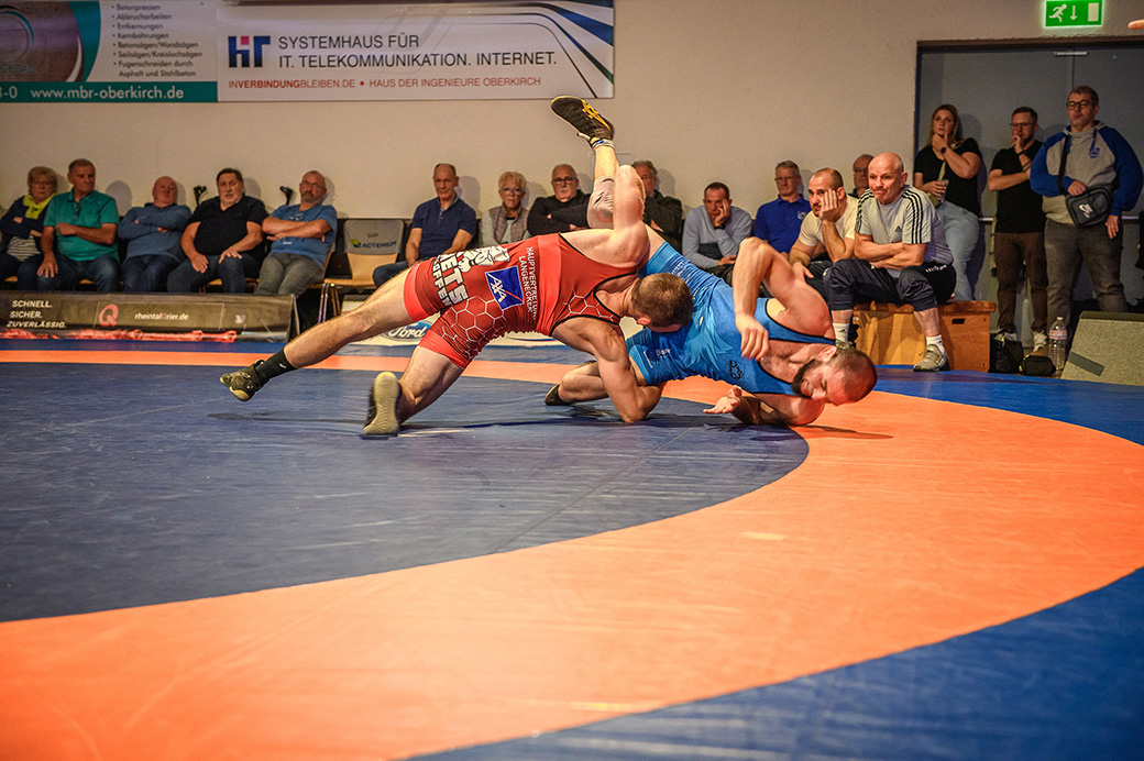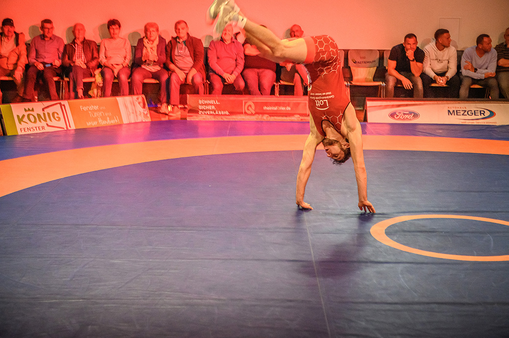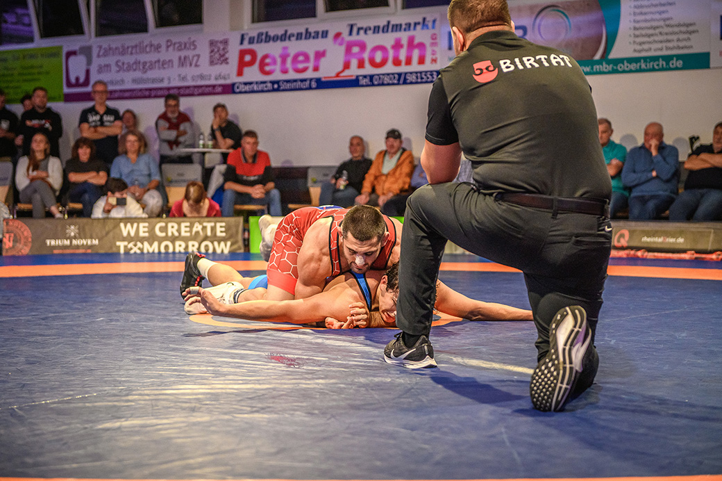61 kg (gr.-röm.) Leon Schmidt musste kaum eingreifen. Sein Gegner David Heissler kam bereits angeschlagen auf die Matte und ließ sich nach wenigen Sekunden schultern. (5:2)