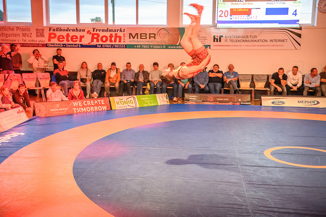 71 kg (gr.-röm) Huseyn Garibov übernahm vom Pfiff an die Initiative und setzte seinen Gegner Hasan Yilmaz sofort unter Druck. Im Verlauf der ersten Kampfhälfte konnte er somit seinen Gegner passiv stellen. Durch einen wunderschönen Ausheber und weiteren Druchdrehern am Boden ging er anschließend mit 11:0 technischen Punkten in Führung. Zu Beginn der zweiten Hälfte konnte der Aserbaidschaner im Dienste des ASV den Kampf aufgrund technischer Überlegenheit für sich entscheiden. (13:8)
