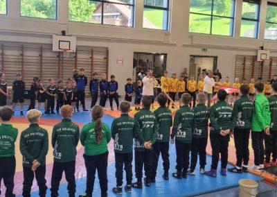 Die Kinder machten sich selbstständig warm und sorgten gleich zu Beginn für Aufsehen: Der Einmarsch erfolgte nicht wie gewohnt im ruhigen Schritt – die Urloffener sprinteten mit voller Energie in die Halle.