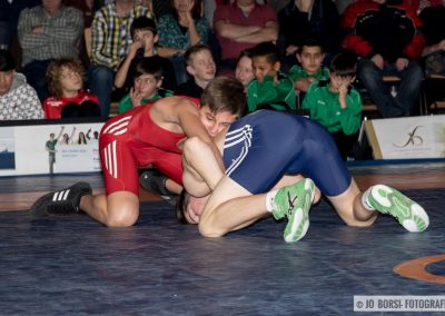 75kg (gr.-röm.): Tarec Knosp traf auf Schuttertals Felix Stiffel. Knosp dominierte den Kampf von Beginn an und zeigte sehenswerte Aktionen. Nach zwei sauberen Aushebern schulterte Tarec Knosp den überforderten Stiffel mit einem Halbnelson. (23:4)