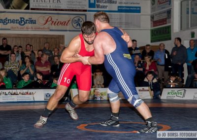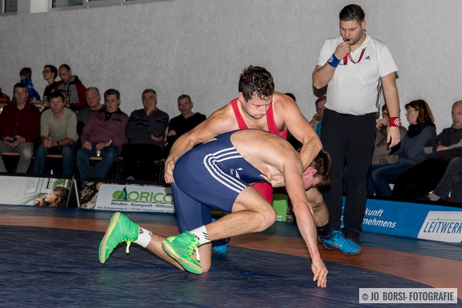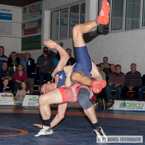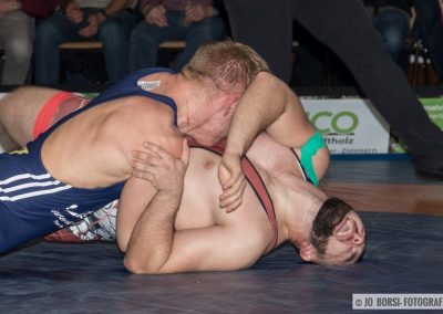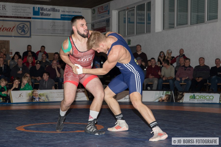 98kg (gr.-röm.): Patrick Garnier stand Schuttertals Martin Himmelsbach gegenüber. Beide Athleten rangen am Limit und schenkten sich nichts. Sie egalisierten sich im Standkampf und keiner konnte im Bodenkampf Akzente setzen. Beide Athleten erhielten jeweils einen Verwarnungspunkt. Garnier gewann den Kampf, aufgrund der letzten Wertung, beim Stand von 1:1 (11:0)