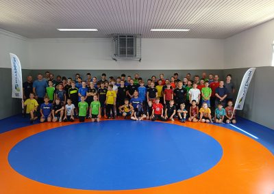 Nach der Begrüßung um 10 Uhr startete der Tag mit einem gemeinsamen Aufwärmen. Anschließend wurden die Teilnehmer nach Stilart und Gewichtsklasse auf die beiden Hallen aufgeteilt. In mehreren Trainingseinheiten wurden Stand- und Bodentechniken vermittelt, die jeweils auf die Stilarten abgestimmt waren.