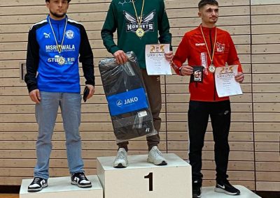 Urloffen/Benningen…(ms)…. Am vergangenen Samstag trafen sich im Württembergischen Benningen 173 Ringer aus 64 Vereine um ihren Meister der U20 zu ermitteln. Darunter auch sechs Athleten der Hornets aus Urloffen. Die Sportler der Jugendakademie des ASV Urloffen haben mal wieder geliefert. Alle vier Titelträger des ASV gewannen sämtliche Kämpfe vorzeitig und gaben im gesamten Turnierverlauf nicht einen einzigen Punkt ab. David Kiefer zeigte auch eine Gewichtsklasse höher, bis 61kg, seine Stärke. In allen vier Kämpfen ging er jeweils als vorzeitiger Sieger von der Matte. Besonders im Finalkampf überzeugte David mit seinem 10:0 Sieg, gegen Ahmet Kabal, den amtierenden 3. Deutschen Meister der U20 in dieser Gewichtsklasse. Noch eine Schippe drauf, legte Abdul Umkhadjiev. Er gewann gleich sechs Kämpfe vorzeitig. Sammelte 54:0 Punkte und benötigte insgesamt nur eine Kampfzeit von knapp vier Minuten für all seine Kämpfe. Umso mehr freut es die Verantwortlichen des ASV Urloffen, dass Abdul – nun doch – auch im kommenden Jahr für die Hornets auf die Matte geht. Als amtierender dritter Europameister bis 92kg, ging Daniel Fischer als haushoher Favorit auf die Matte. Nach drei vorzeitigen Siegen konnte er dieser Rolle gerecht werden und sich mit dem Titel krönen. Aram Shiko hatte es besonders eilig. Insgesamt benötigte er nur 2min 20sek um in drei Kämpfen 28:0 Punkte und zwei Schultersiege zu sammeln. Mit Justin Federer hatte der ASV Urloffen noch ein weiteres Eisen im Feuer. In einer starken Gewichtsklasse konnte sich Justin am Ende den 5. Platz erkämpfen. Auf Platz 17 kam Fabian König in der gleichen Gewichtsklasse. In der Vereinswertung landete der ASV Urloffen mit sechs Punkten Vorsprung auf Platz 1. Gefolgt von der punktgleichen RG Lahr (2.) und dem KSV Neckarweihingen (3.).
